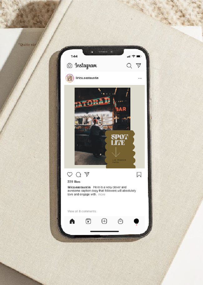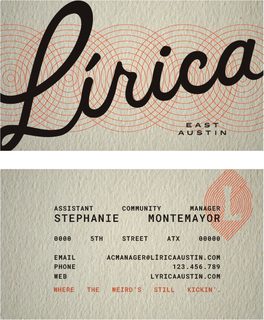 Lírica pulls from the textures already there — record store interiors, Austin’s offbeat visual language, the neighborhood’s Hispanic history and musical roots. The system is bold and graphic, but never generic. Type, patterns, and illustration take cues from old newspaper cartoons, hand-made signage, and locally grown music culture, creating moments that feel referential without turning nostalgic. B2 Design led the interior design